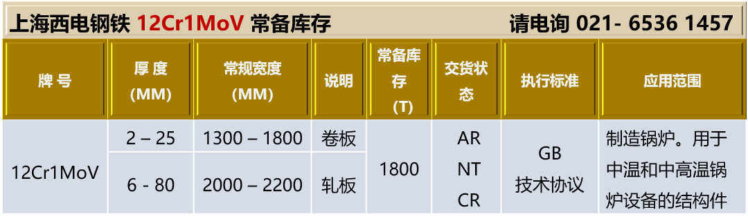 上海西电钢铁 - 合金钢板 12Cr1MoV