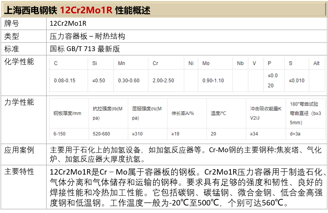 上海西电钢铁 - 国标容器板 12Cr2Mo1R